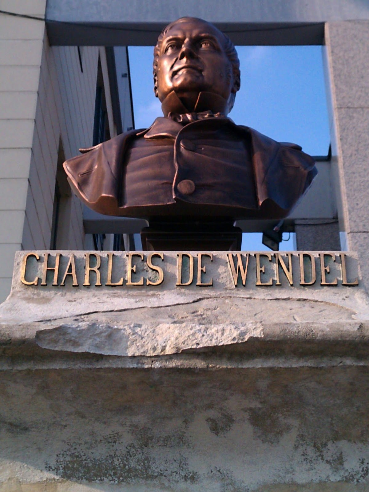 This statue is located in Striring-Wendel. The steel magnate did much for the town and the workers in his factories, and thus the town bears his name (Charles de Wendel - French Wikipedia).